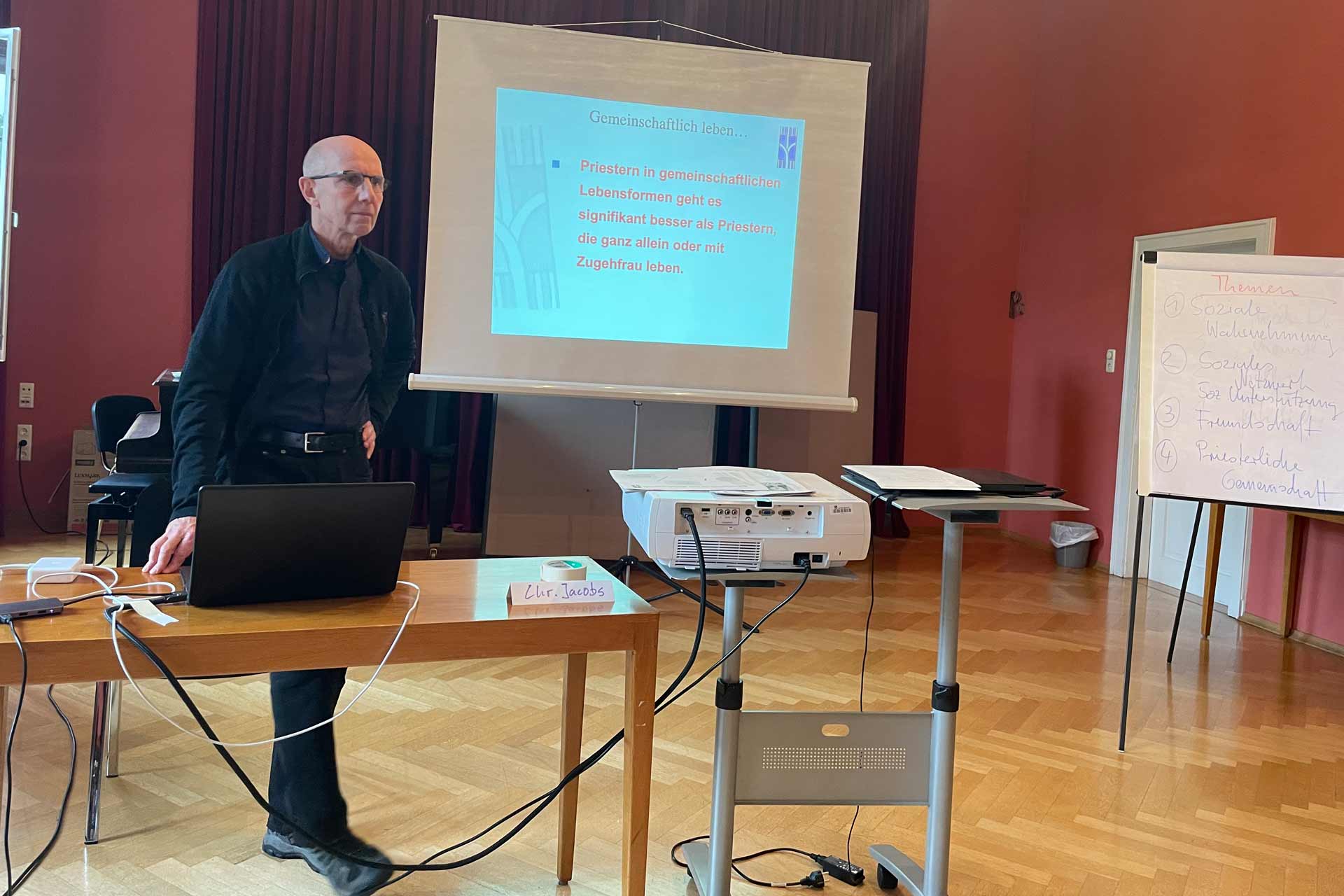 Am Samstag ging es für die Bewohner des Herzoglichen Georgianums nahtlos weiter bei einem Studientag mit Prof. Dr. Christoph Jacobs, Lehrstuhlinhaber für Pastoralpsychologie und Pastoralsoziologie an der Theologischen Fakultät Paderborn. Gemeinsam erarbeitet wurde dabei das wichtige Thema „Beziehungskultur und Gemeinschaft“.