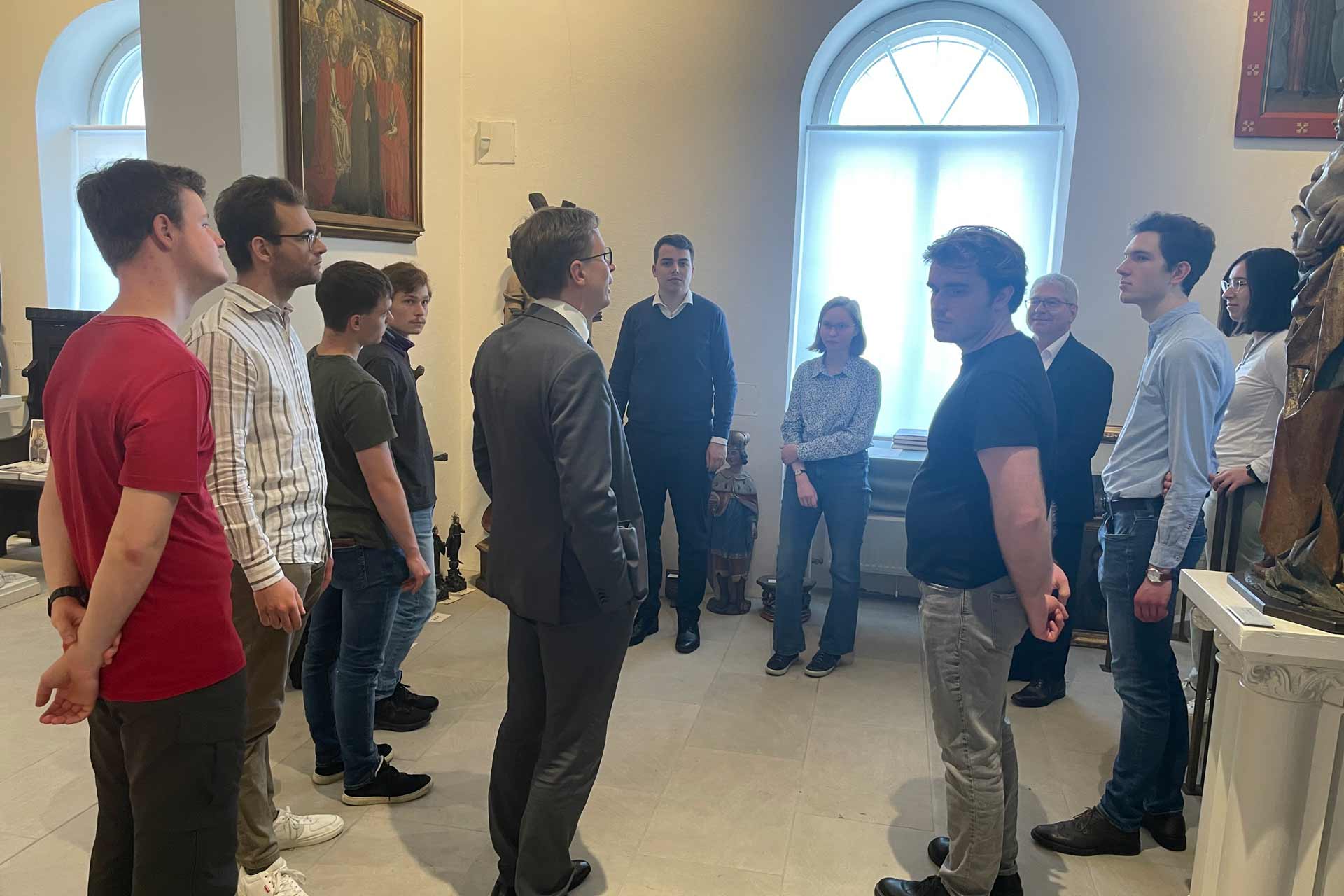 Zum Abschluss des Veranstaltungsreigens hieß die Hausgemeinschaft am darauffolgenden Mittwoch noch eine Gruppe von Studierenden der Stiftung Maximilianeum aus dem nahen Stadtteil Haidhausen bei sich willkommen. Reichlich Gelegenheit für angeregte Gespräche bot dabei erst ein gemeinsames Mittagessen, dann eine kurze Besichtigung des hiesigen Museums.