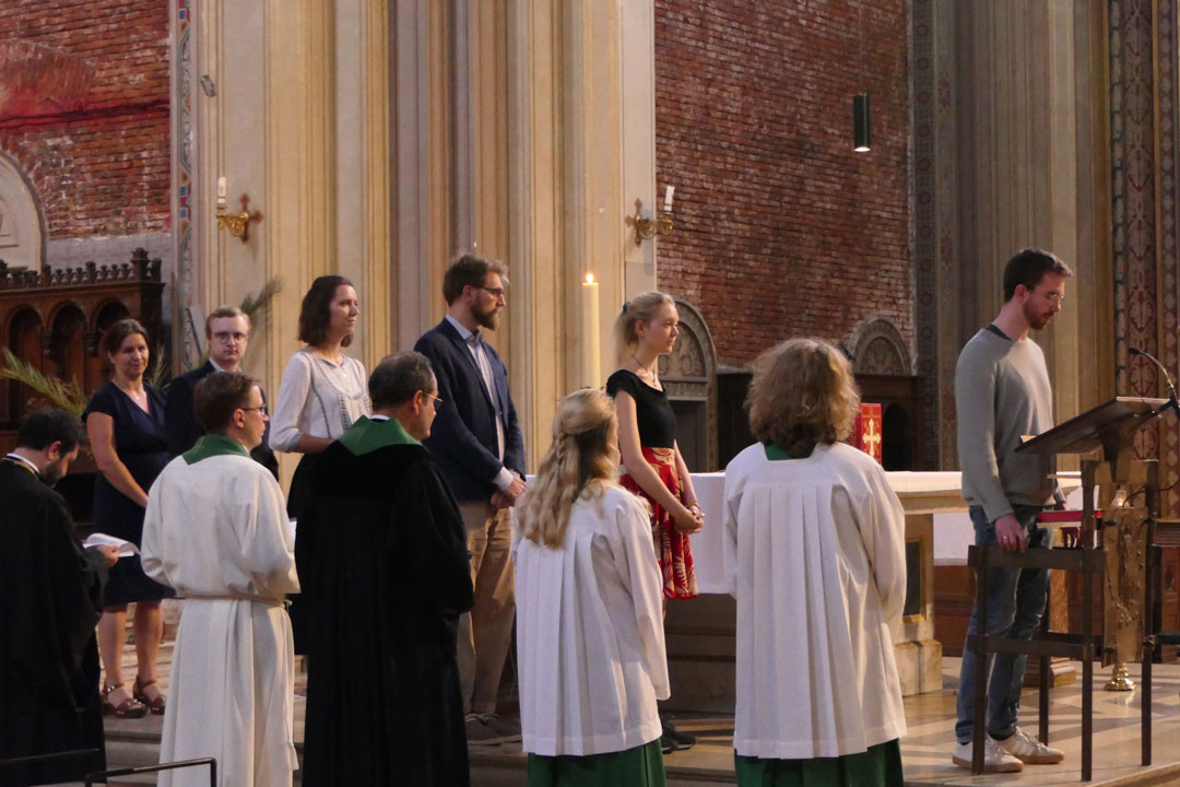 Ihre Fürbitten schickten die weiteren Mitwirkenden aus dem Kreis der Studierenden und Mitarbeitenden der theologischen Fakultäten der LMU unterdessen sinnenfällig mit Weihrauch gen Himmel. Zur musikalischen Gestaltung des Gottesdienstes trugen diesmal Orgelspiel, eine Band und die Schola des Herzoglichen Georgianums bei.