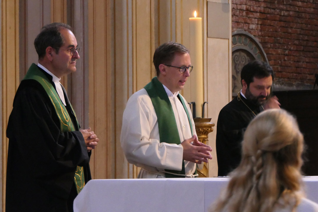 Die Predigt hielt Prof. Dr. Martin Wallraff und eröffnete den Zuhörenden darin geistreich neue Blickwinkel auf den nahe gelegenen Englischen Garten. Für die Verkündigung des Evangeliums und den Segen trat außerdem Prof. Dr. Stefanos Athanasiou hervor.