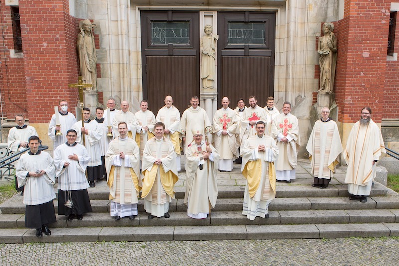 Am 29. Mai wurde unser Mitbruder Stephan Komiscke zusammen mit Gregorz Bajer und Marco Pulcini in St. Matthias in Berlin von Erzbischof Dr. Heiner Koch zum Priester geweiht. In seiner Predigt wies er auf die Gnade der Berufung hin, die Herrlichkeit und Liebe Gottes als Segen in die Welt tragen zu dürfen.