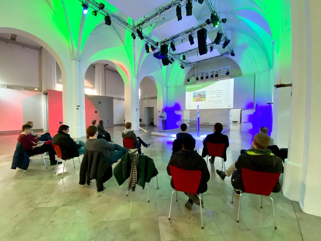 „Was willst du, dass ich dir tue?“ (Mk 10,51) Dieses Wort aus dem Sonntagsevangelium unseres Auftaktwochenendes begrüßte uns nun auch bei unserem Besuch in der Münchener Jugendkirche wieder – als Motto der „subjekt- und sozialraumorientierten Jugendpastoral“ von Pf. Tobias Hartmann und Annette Fröhlich. Hier sind Jugendliche nicht bloß schmückendes Beiwerk zur Senkung des kirchlichen Altersdurchschnitts, sondern stehen mit ihren Bedürfnissen, Anliegen und (oft kritischen!) Fragen im Mittelpunkt. Bereits die kreativen Titel der vorgestellten Veranstaltungen lassen das Ergebnis dieses Ansatzes erahnen: Holywood-Messe, Exodus-Feier, Moments of spirit, Meterstab, Mitgehört – zugehört, die Chroniken des Phoenix…