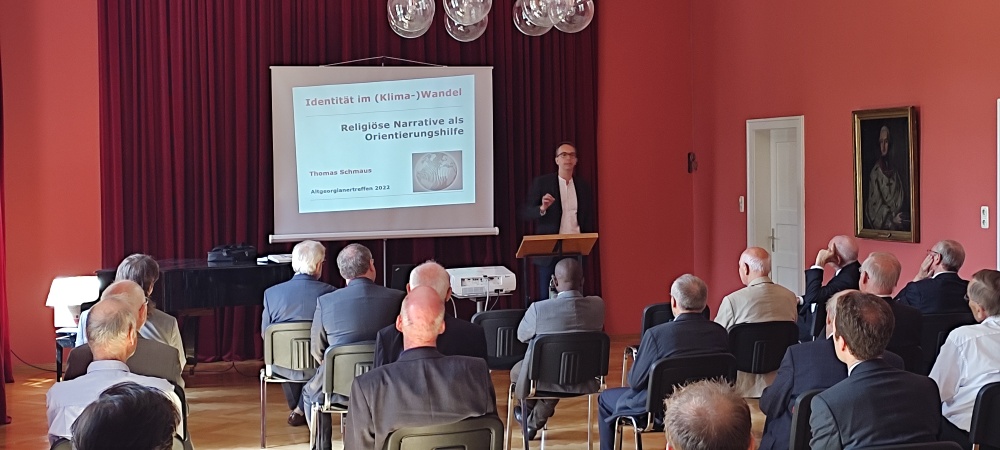 Passend zu den sommerlichen Temperaturen hielt Thomas Schmaus auf dem Treffen der Altgeorgianer seinen Vortrag: „Identität im Klimawandel – Religiöse Narrative als Orientierungshilfe“.