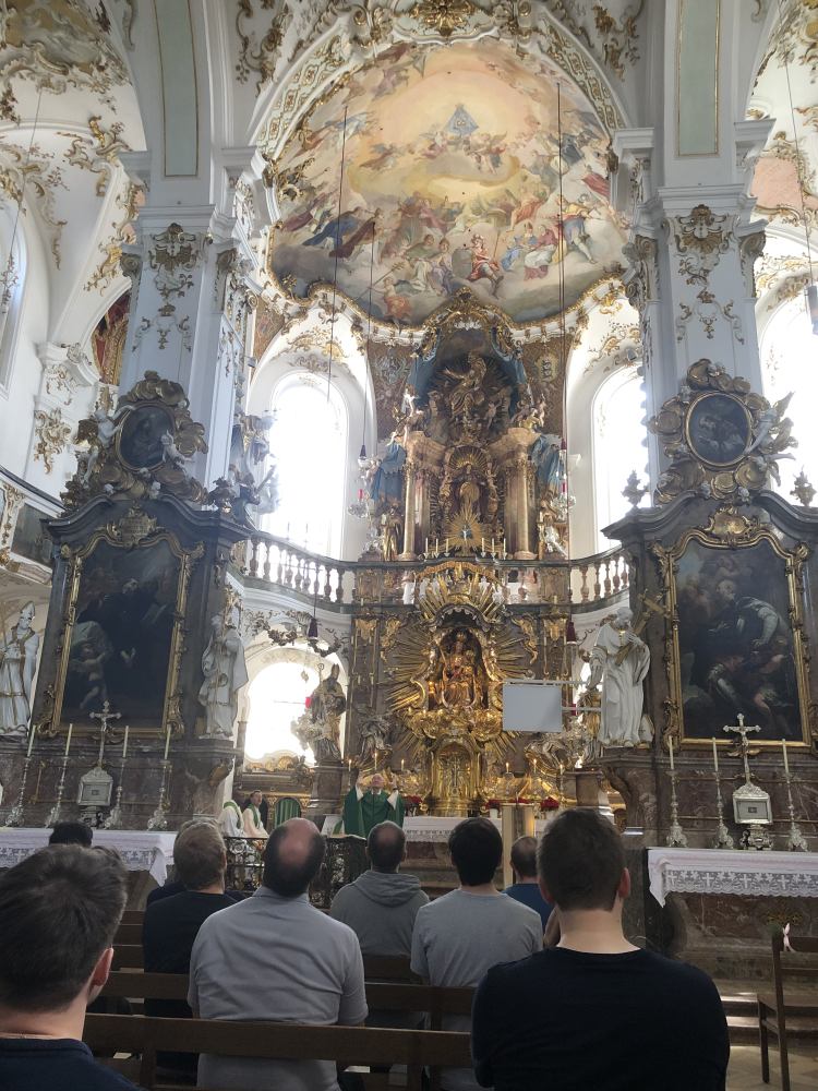 Nicht nur angesichts der herannahenden Prüfungsphase – aber vielleicht auch? – unternahmen wir einen Pilgerausflug auf „Bayerns Heiligen Berg“. Nach dem munteren Aufstieg feierten wir unter dem „Andechser Himmel“ die Heilige Messe und kosteten von den Spezialitäten der Klosterbrauerei. Dank der Führung von P. Valentin erhielten wir einen Überblick über die Entwicklung des Klosters und erhaschten einen Blick auf die berühmte Dreihostienmonstranz. Mit einer Vesper beschlossen wir unseren Aufenthalt und kehrten, zurück in München, im zünftigen Görreshof ein.