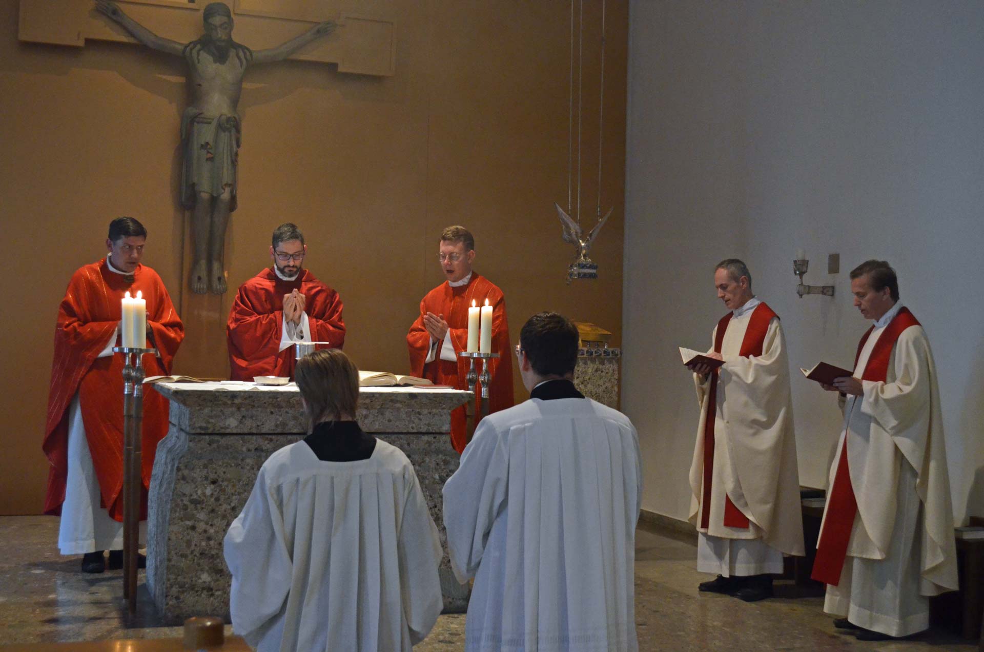 Im Beisein wechselnder Abordnungen der Hausgemeinschaft haben in den vergangenen Monaten gleich mehrere Altgeorgianer die Priester- und Diakonenweihe empfangen.